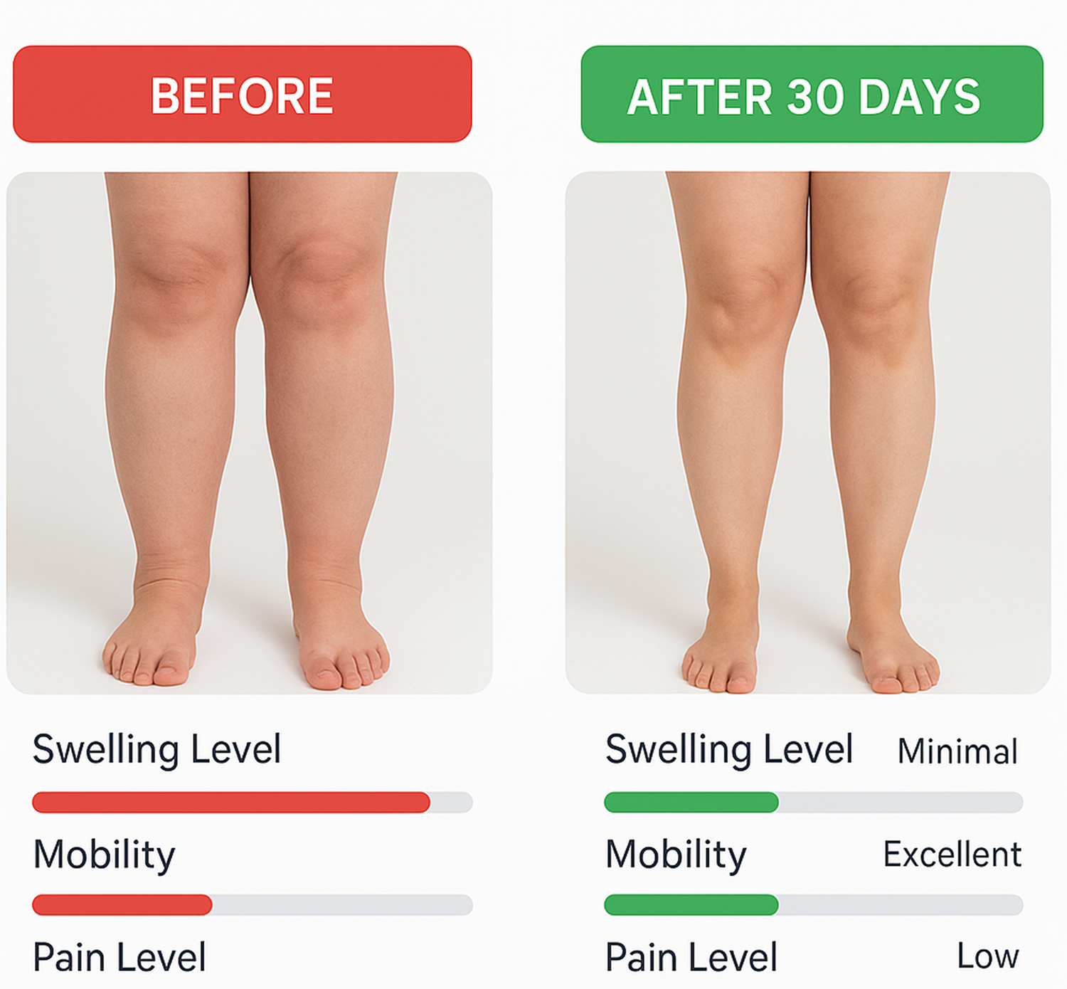 ✅ Leg swelling visibly reduced and pain-free walking by Weeks 3–4