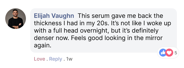 Not gonna lie I was pretty down about my thinning hair at 39. This stuff turned things around. People at work actually commenting on how good my hair looks lately.