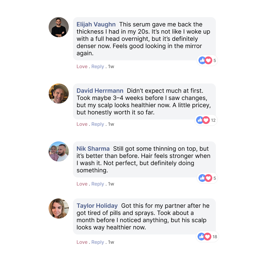 Not gonna lie I was pretty down about my thinning hair at 39. This stuff turned things around. People at work actually commenting on how good my hair looks lately.
