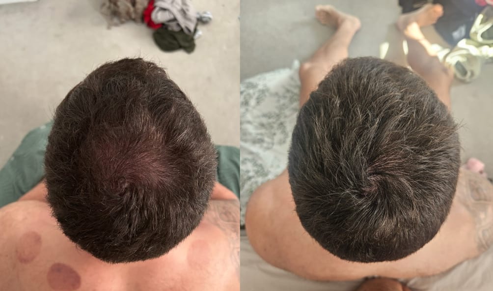 Just wanted to drop a review cause this stuff saved my hairline. Been using it almost 4 months and my hair looks so much better its crazy. Not even expensive when you think about what you're saving.